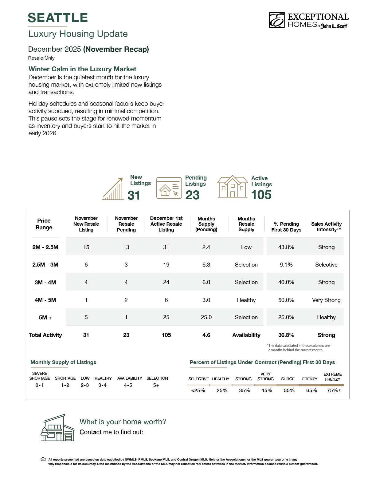 Holiday schedules and seasonal factors keep buyer activity subdued, resulting in minimal competition. This pause sets the stage for renewed momentum as inventory and buyers start to hit the market in early 2026.